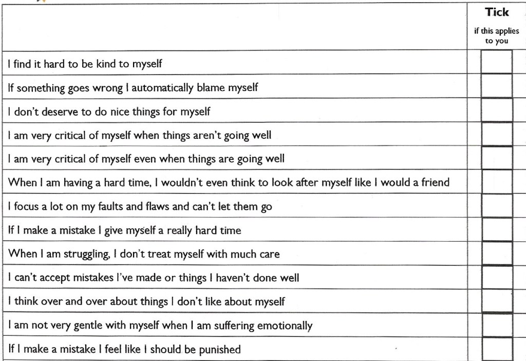 How many did you need to write down? If someone else was doing this exercise and had written down all the things you did, what would you say to them? If your inner child felt the same way you do, what would you say to him/her? Can you see how hard you are on yourself? Do you think that’s fair? If someone else was being hard on themselves, what would you say? Do you think other people deserve to do kind things for themselves? What would you say to a friend who was focusing on all their faults and flaws? How would you treat a young person who was suffering emotionally? What kinds of things do you think people should be punished for? Why do you think you are any different than all those “other” people? I think that is an extremely important question. I would have to ask myself, am I different? How am I different? Do I need to be better than everyone else? Well, you might say yes, but that would be a core belief. One that needs to be challenged. You can get some ideas on how to change core beliefs from my post on Self-Esteem Part 3. Remember that if you find yourself really struggling with this that help is out there, you just need to ask.